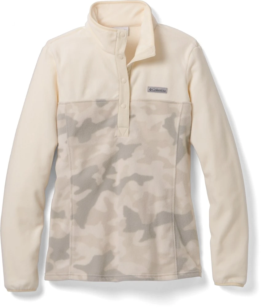Worn over or underneath another layer, the women’s Columbia Benton Springs Half-Snap pullover is a comfortable, classic and cozy layer for cool-weather hiking.
