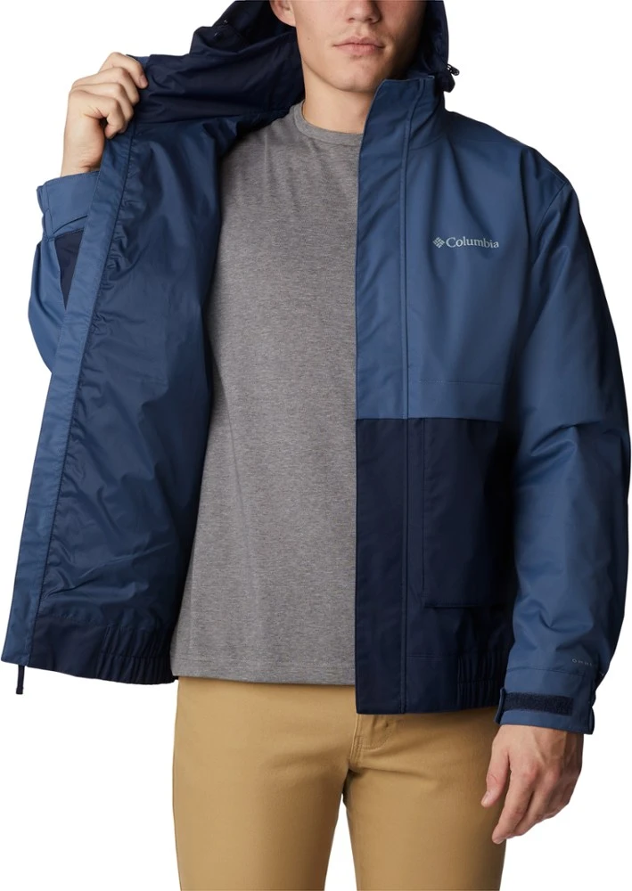 Waterproof and sporty, this men’s Columbia Boundary Springs jacket helps you get out there without getting wet. It’s seam-sealed for extra protection and has an adjustable hood that stows away.