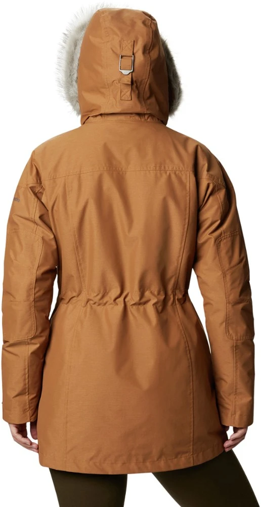 - Droptail hem, adjustable cuffs and removable, foldable synthetic fur keep warmth in