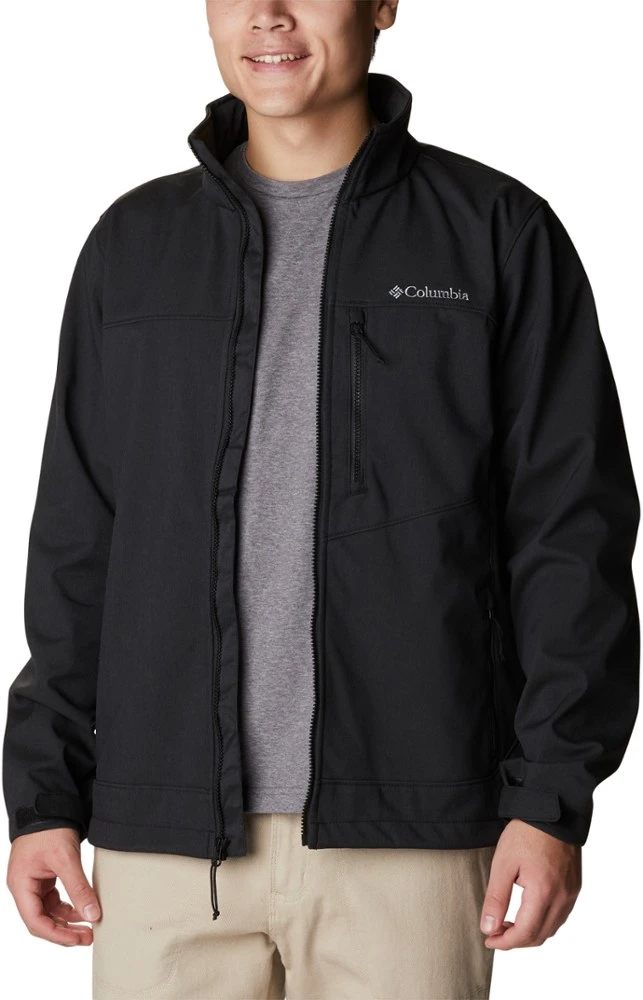 Designed with multiple pockets and an adjustable hem and cuffs to seal the elements out, the men’s Columbia Cruiser Valley soft-shell jacket is a great option for wearing on the trail or around town.