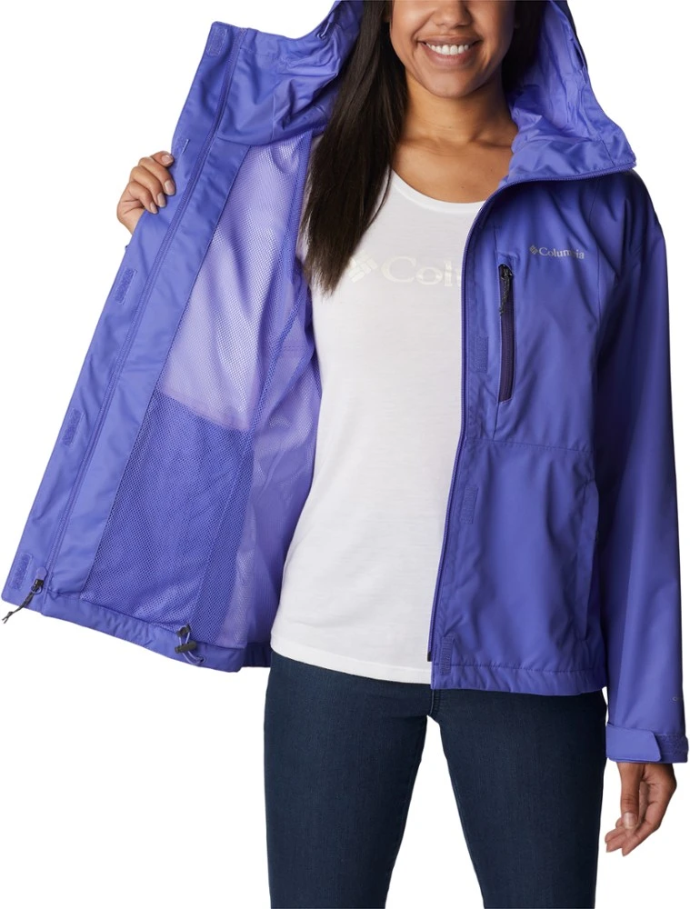 Don’t let storms hold up your hikes. With the waterproof, seam-sealed protection of the women’s Columbia Hikebound rain jacket, you can stay comfortable on rainy treks.