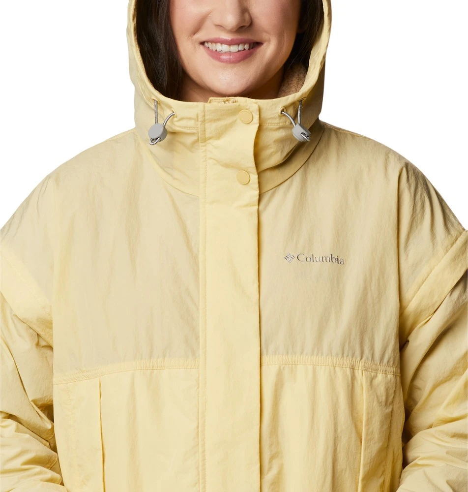 - Drawcord-adjustable hood and hem