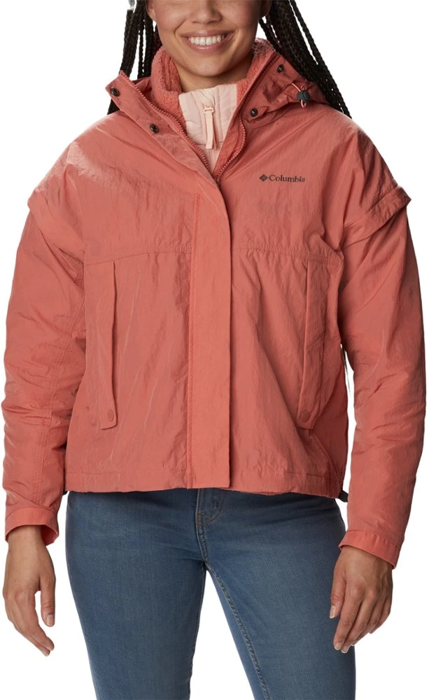 You’ve got options in the Columbia Laurelwoods Interchange 3-in-1 jacket. Wear the hooded shell and sherpa liner alone or together for custom comfort—or zip off the shell sleeves into a light vest.