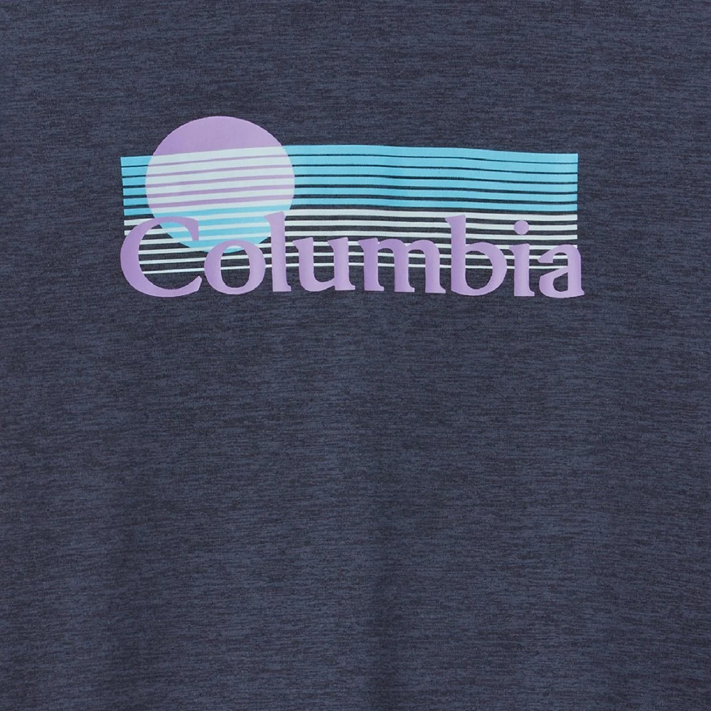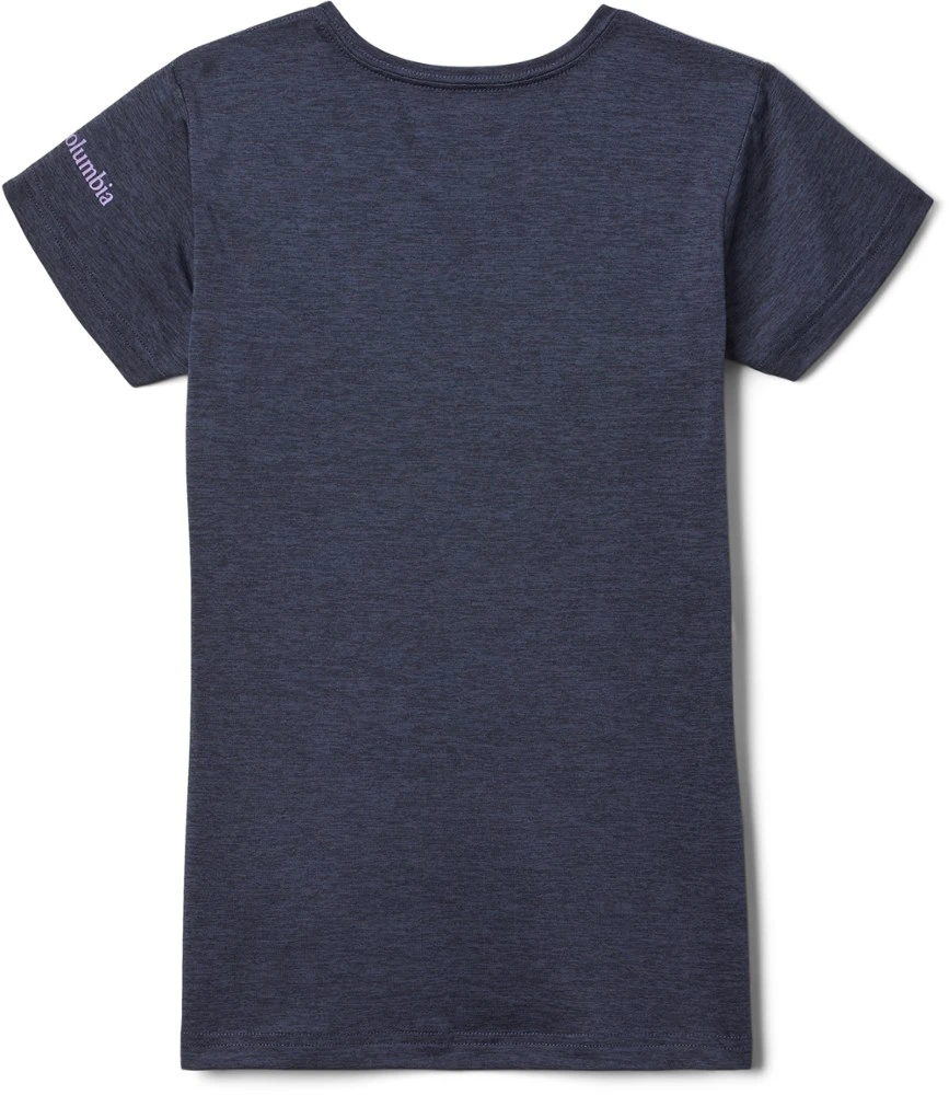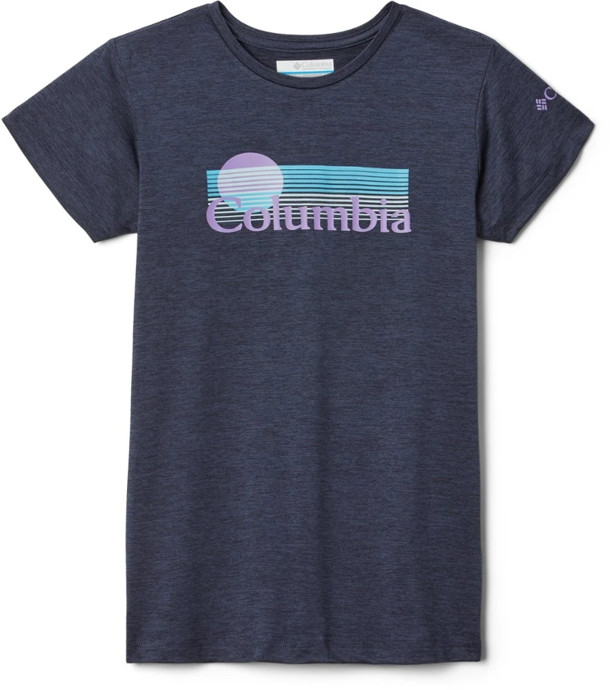 Soft, sun-protective and stretchy, the easygoing Columbia girls’ Mission Peak short-sleeve graphic T-shirt helps your little adventurer show everyone on the playground what the outdoors are all about.