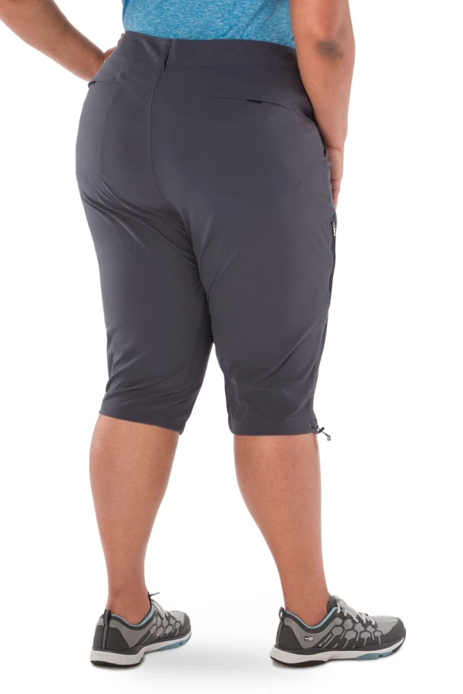 Protect yourself from the elements and enjoy great fit and comfort while hiking with in the plus-size Columbia Saturday Trail II knee pants with water-repellent, UPF 50 stretch fabric.
