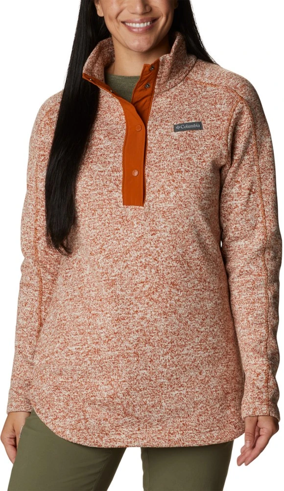 Warm up cold winter days in the women’s Columbia Sweater Weather Tunic top. It’s designed with a long and roomy fit, comfortable stretch, and soft fleecy feel.