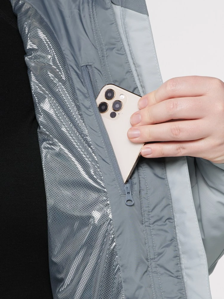 - Zippered hand pockets; zippered chest pocket; ski pass pocket; interior security pocket; goggles pocket